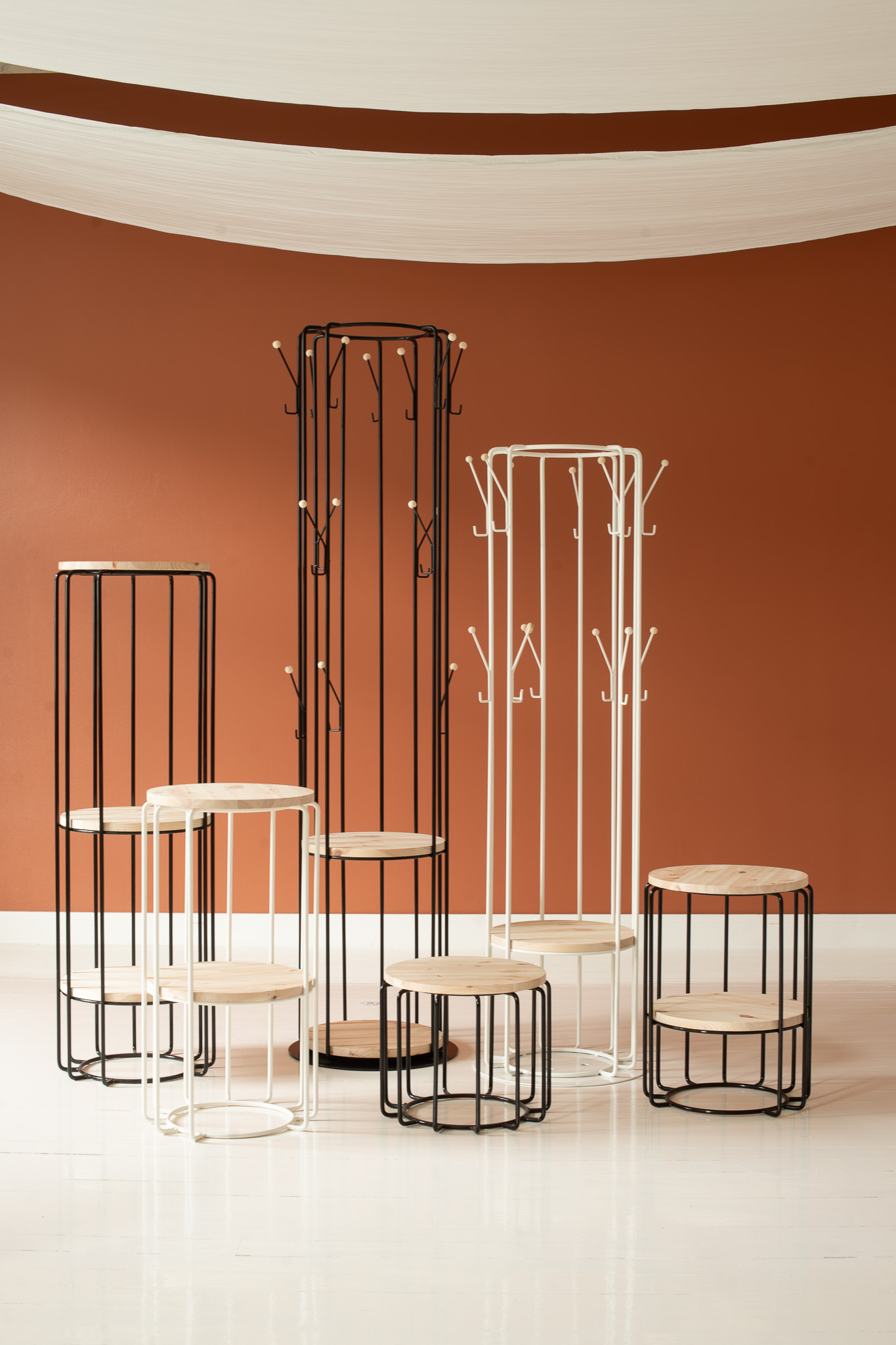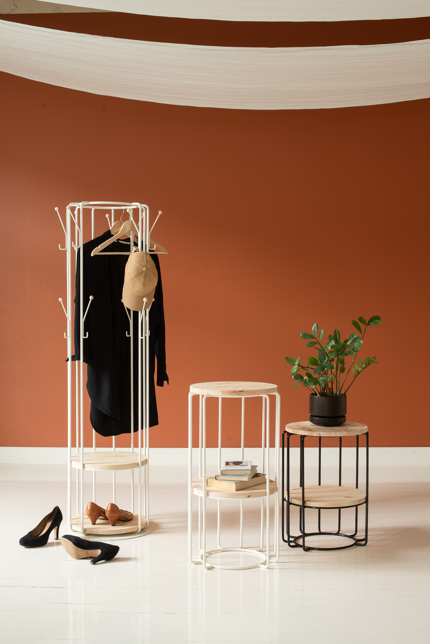 Runko: musta tai valkoinen teräs + käsittelemätön massiivimänty.