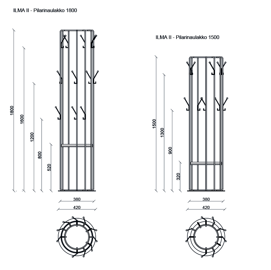 ILMA-sarjan uusi tulokas teräksinen pilarinaulakko. Pystynaulakko on tukeva ja soveltuu niin koti- kuin julkikäyttöön. Kahta eri korkeutta: 150 cm ja 180 cm.